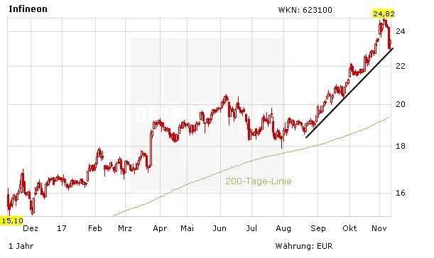 Die Performance des Chipherstellers Infineon ist beeindruckend. In den vergangenen Wochen und Monaten ist die Aktie von einem Hoch zum nächsten geklettert. Untermauert wurde dies durch starke Zahlen aus dem operativen Geschäft. Am kommenden Dienstag, den 14. November, gewährt Infineon erneut Einblick in die Bücher.