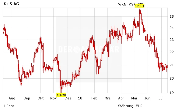 Die mittel- bis langfristigen Aussichten für die Düngemittelproduzenten bleiben gut. K+S ist aber unter anderem wegen der immer noch relativ hohen Verschuldung (die Nettoschulden beliefen sich zuletzt auf knapp drei Milliarden Euro) ein eher spekulativer Branchenvertreter. Wer hier dabei ist, beachtet den Stopp bei 18,50 Euro. Konservative Anleger können indes auch auf den kanadischen Kali-Riesen Nutrien setzen (siehe Ausgabe 27/2018).