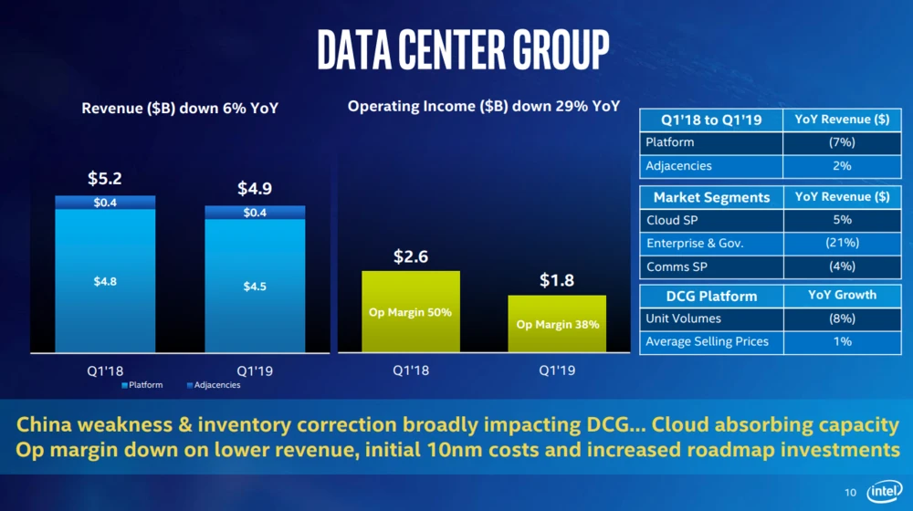 Die sonst sehr starke Data-Center Sparte, musste im vergangenen Quartal einen Dämpfer hinnehmen. Der Umsatz sank hier um sechs Prozent auf 4,9 Milliarden Dollar. Begründung war das schwache Geschäft in Asien, insbesondere in China, wo das Wirtschaftswachstum etwas nachgelassen hatte.