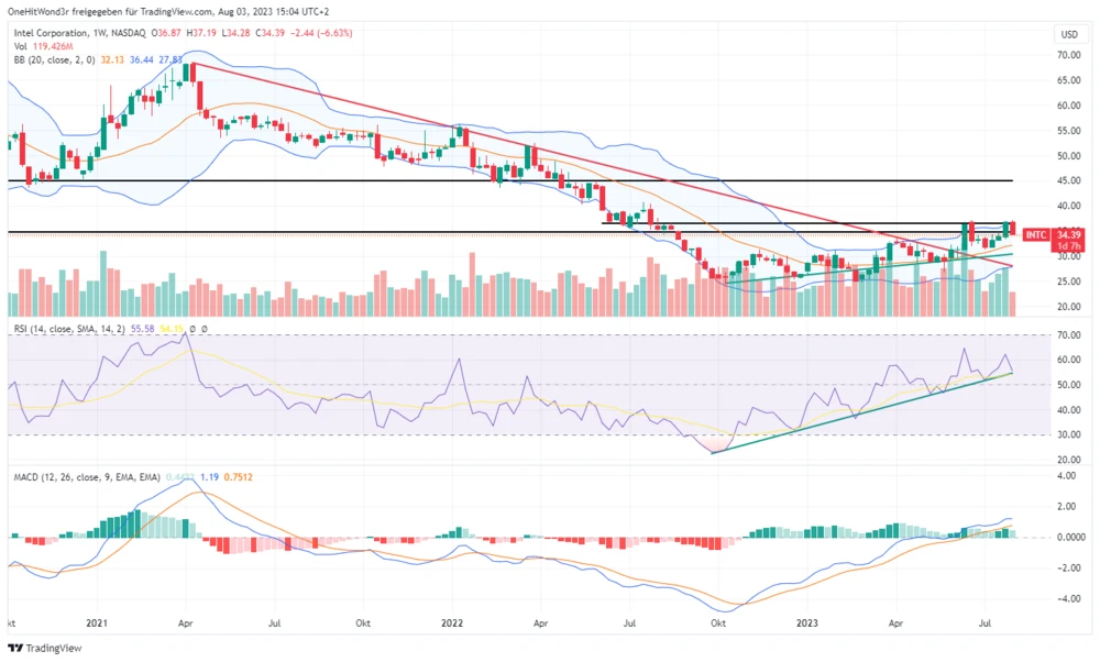 Bei Intel läuft erkennbar eine Wette darauf, dass dem Traditionskonzern die operative Wende gelingen wird. Die jüngst veröffentlichten Quartalszahlen unterstützten diese These durchaus, wenngleich es noch etwas an Sichtbarkeit fehlt. Die ist dafür im Chart gegeben, der einen starken Erholungstrend mit der unmittelbaren Chance auf einen weiteren Ausbruchsversuch zeigt.
