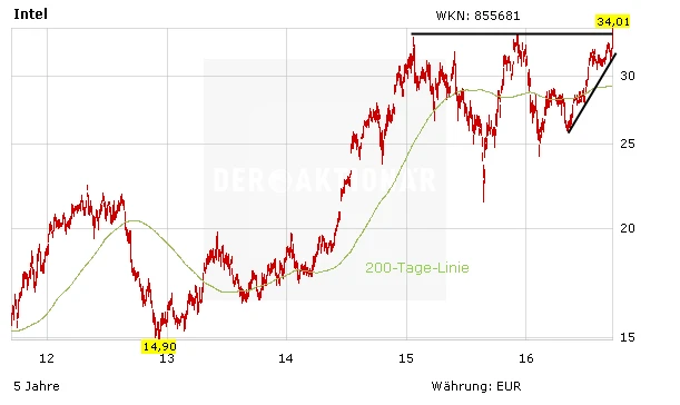 Mit diesen positiven Impulsen erreichten die Papiere von Intel ein neues Mehrjahreshoch: Kaufsignal! Die Empfehlung vom AKTIONÄR aus Heft 35/16 geht auf – mittlerweile beläuft sich das Kursplus auf rund sieben Prozent. Die Aktie bleibt aussichtsreich. Kaufen!