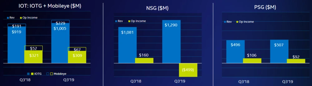 Das dritte Segment, wo Intel IOT (Chips für IoT und Automotive), NSG (Speicher-Chips) und PSG (FPGA-Chips) zusammenfasst, hat ebenfalls einen deutlichen Zuwachs verzeichnet. Hier stiegen die Umsätze um 13 Prozent. In der spannenden Autosparte Mobileye, die unter anderem Technologie für autonomes Fahren entwickelt, wuchs der Umsatz sogar 20 Prozent.