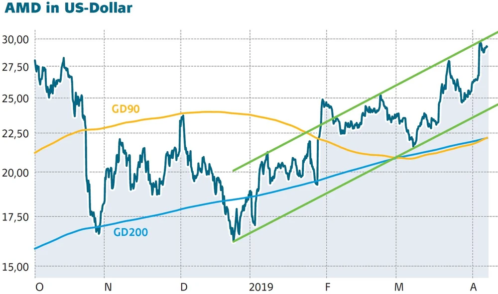 Die negative Intel-Studie gibt der Aktie von AMD heute wieder etwas Schwung. Der leichte Impuls dürfte jedoch nicht Ausreichen, um aus dem Trendkanal auszubrechen. Nach dem rasantem Anstieg zur Wochenmitte hält DER AKTIONÄR eine schwache Konsolidierungsbewegung für wahrscheinlicher. Langfristig sollte es jedoch mit der Aktie unverändert aufwärts gehen. Die Story ist intakt und hat durch das Wiedererwachen des Krypto-Marktes wieder eine Facette hinzugewonnen.