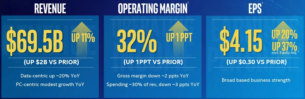 Intel lieferte im ersten Quartal ein Umsatzplus von 15 Prozent auf 17,0 Milliarden Dollar. Damit lagen die Erlöse deutlich über den Erwartungen der Analysten von 16,79 Milliarden Dollar. Auch die Gewinne je Aktie übertrafen die Experten-Schätzungen. Berichtet wurden 1,04 Dollar je Aktie – erwartet wurden 0,93 Dollar.