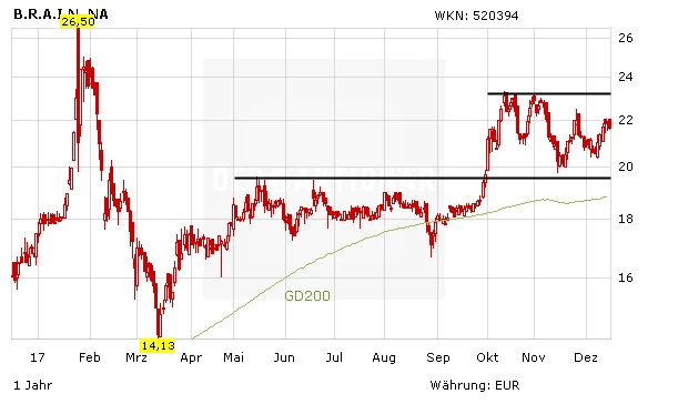 Mit den vorgelegten Zahlen traf BRAIN die Erwartungen. Im kommenden Geschäftsjahr will die Gesellschaft das Wachstum beschlunigen. Nach der jüngsten Kapitalerhöhung sollen dabei auch Überanhmen einen wesentlichen Faktor darstellen. Das Unternehmen ist ein einem hochinteressanten Segment enorm stark positioniert. Die Forschungsarbeit von BRAIN dürfte in Zukunft immer gefragter werden. Die Aktie ist ein Top-Nischenplayer, der langfristig orientierten Anlegern noch viel Freude bereiten dürfte. Die nächste charttechnische Hürde, die es zu überwinden gilt, liegt bei 23,30 Euro.