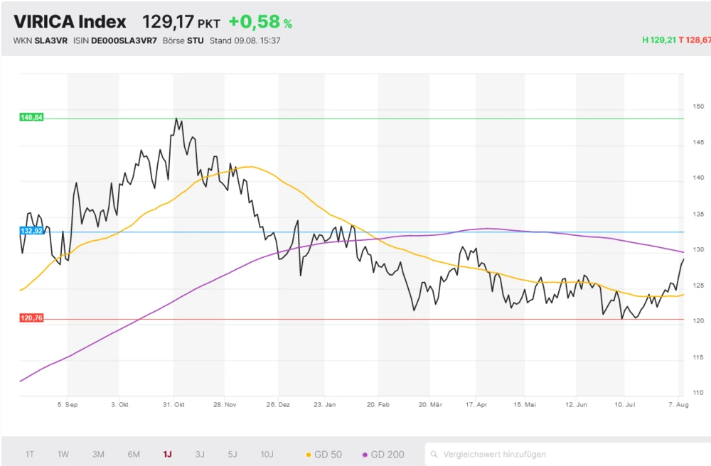Ionis ist Mitglied im DER AKTIONÄR Virica Index und hat dort hinter Regeneron, Vertex und Amgen derzeit die viert-höchste Indexgewichtung. Mit dem Faktor 1-Zertifikat WKN MF20AC können Anleger nahezu eins zu eins an der Entwicklung von fünf Pharmaunternehmen gleichzeitig teilhaben.