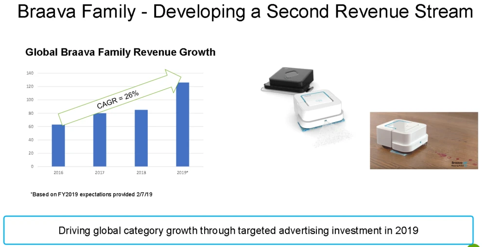 Um die Abhängigkeit von den bekannten Saugrobotern zu reduzieren, setzt iRobot seit längerem auf die Wischroboter-Serie Braava und Mähroboter.