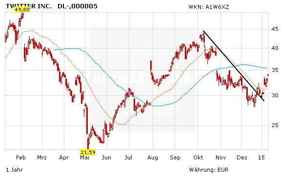 Die Twitter-Aktie hatte zuletzt den kurzfristigen Abwärtstrend verlassen. Trader hoffen auf eine deutliche Gegenbewegung. Die übergeordnete Verkaufsempfehlung für Twitter bleibt jedoch bestehen.