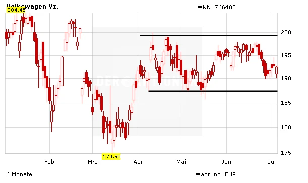 Fakt ist: VW bastelt weiter daran, zum größten Autobauer der Welt aufzusteigen. Die Aktie indes braucht neue Impulse. In China ist der VW-Konzern glänzend positioniert, Europa erholt sich, lediglich in den USA hakt es derzeit. Dennoch: Die VW-Lenker Winterkorn und Piech setzen voll auf Wachstum, was ganz zu lasten der Margen geht. Die Kernmarke VW fährt derzeit nur rund 1,6 Prozent Marge ein. Das bekommen auch die Aktionäre zu spüren: Die VW-Aktie hängt seit Wochen in einer Seitwärtsrange zwischen 175 und 205 Euro fest. Erst ein Ausbruch über das alte Hoch bei 205 Euro würde der Aktie einen neuen Schub geben. Neu- beziehungsweise Zukäufe sollten bis dahin zurückgestellt werden. Im Vergleich dazu zeigen sich die Aktien von BMW und Daimler deutlich dynamischer.
