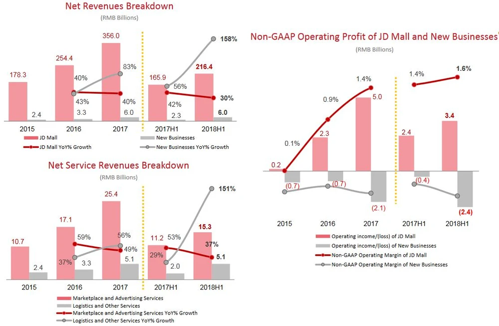 China-Aktien haben es aktuell im Gesamtmarkt schwer – insbesondere wenn sie in Zeiten des Handelsstreits ihre Umsätze mit Handel machen. Bereits früh hat JD.com auf hochwertige europäische und amerikanische Markenprodukte gesetzt. Daneben investiert der Konzern stark in neue Geschäftsfelder wie die sogenannten „Retail Services“. Das kratzt jetzt an den Margen. Positiv anzumerken ist an dieser Stelle jedoch, dass sich im E-Commerce-Kerngeschäft die Margen verbesserten.