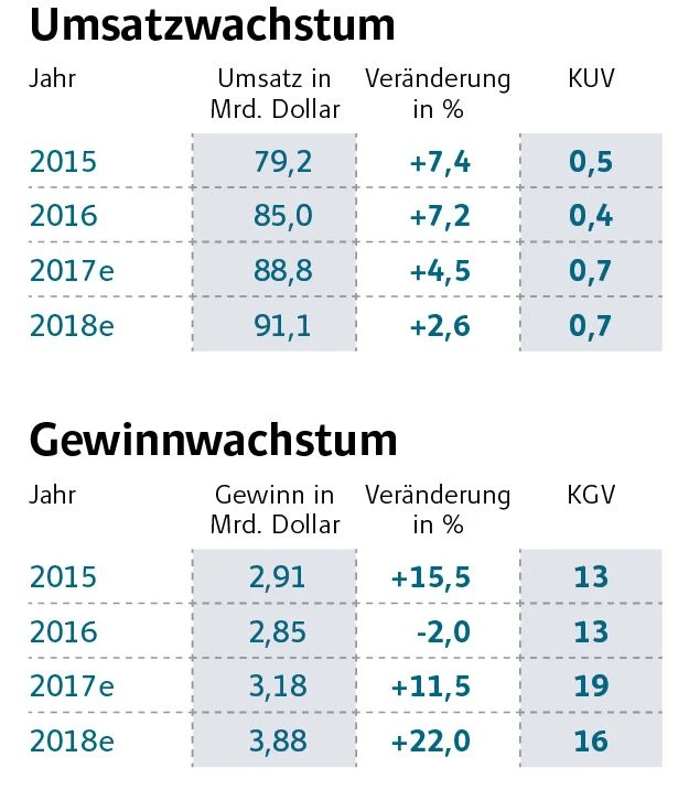 Die Pflichtversicherungen durch Obamacare sorgten jedoch für schwächere Gewinnmargen. Für 2018 plant Anthem daher, die im Rahmen des Affordable Care Acts aufgenommenen Mitgliedschaften um bis zu 70 Prozent zu kürzen. Das Umsatzwachstum steht damit nicht mehr im Vordergrund der Strategie, sondern das Gewinnwachstum. Im Zuge der Umstellung dürften 2018 die Nettogewinnmargen auf 4,3 Prozent steigen und zu einem deutlichen Gewinnwachstum von 22 Prozent führen.