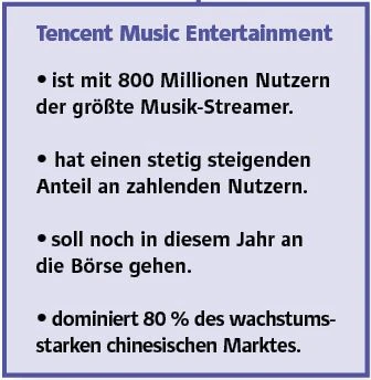 Sind China-Aktien jetzt reif? Insidern zufolge macht der chinesische Streaming-Dienst Tencent Music Entertainment (TME) ernst. Der US-Börsengang soll am 12. Dezember stattfinden und könnte – wie ursprünglich geplant war – mit einem Volumen zwischen einer und zwei Milliarden Dollar angesetzt sein. Ein Stimmungsbarometer für China-Investoren.