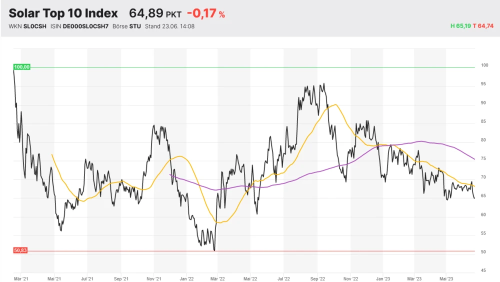 JinkoSolar ist Bestandteil des DER AKTIONÄR Solar Top 10 Index. Hier finden sich weitere Solarunternehmen wie AKTIONÄR-Favorit SolarEdge und das deutsche Unternehmen Encavis. Mit dem Indexzertifikat WKN DA0AAV können Anleger nahezu eins zu eins an der Entwicklung des Index teilhaben.