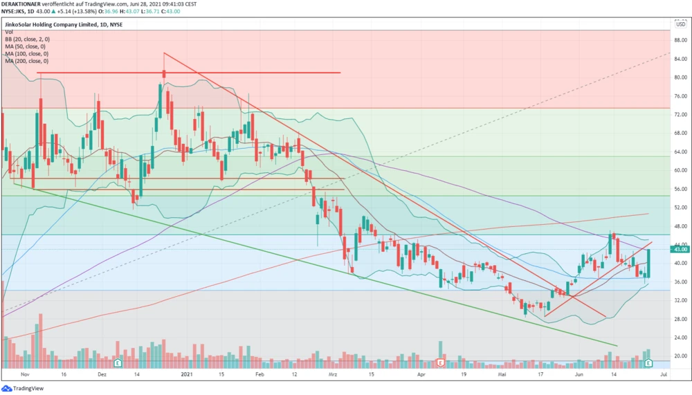 Die Aktie des chinesischen Solarmodulherstellers hat eine enorm spannende Woche hinter sich. Highlight war dabei eindeutig die Veröffentlichung der Quartalszahlen am Freitag. Zuvor hatte die Unsicherheit über die Zahlen für starke Kursschwankungen gesorgt. Aus charttechnischer Sicht hat sich daraus nun eine spannende Situation ergeben.