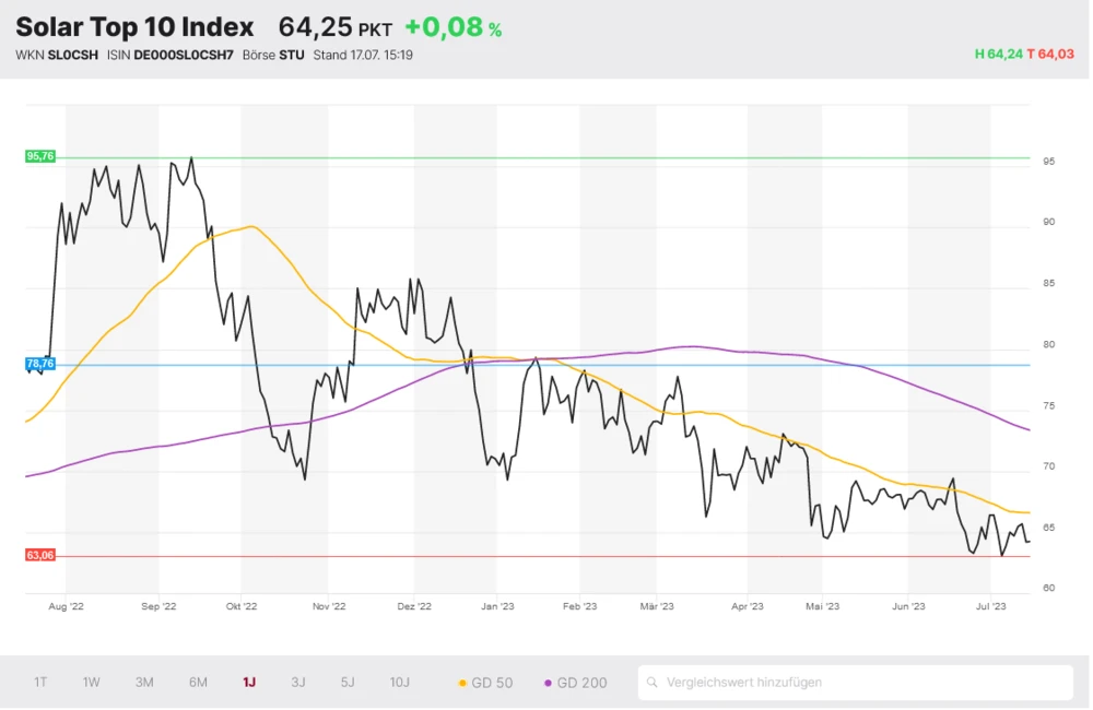 Das Chartbild sieht weiterhin noch nicht ermutigend aus. Seit Anfang Juli 2022 hat die Aktie knapp 50 Prozent eingebüßt. Solange die Aktie keinen Boden gefunden hat, gibt es noch keinen Grund in die Aktie einzusteigen und das, obwohl das Unternehmen mit einem KGV von 6,5 durchaus attraktiv bewertet ist. Neue Impulse und ein Ende des Käuferstreiks könnte es Mitte August geben, hier gibt es Unternehmenszahlen von JinkoSolar.