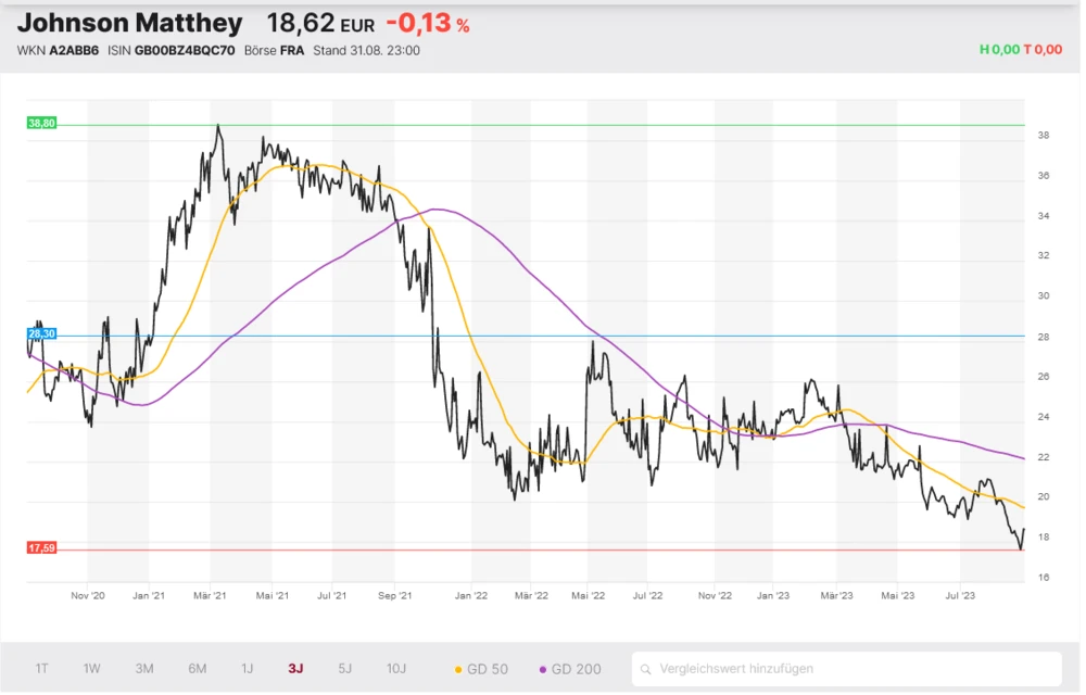 Bei einer Vielzahl von Unternehmen aus den Sektoren Wasserstoff, Wind und Solar gibt es bei Anlegern derzeit wenig Grund zu feiern. So auch beim britischen Wasserstoff-Spezialisten Johnson Matthey. Nach einer langen Durststrecke sendet die Aktie ein Lebenszeichen und legt rund zwölf Prozent zu, das ist der Grund.