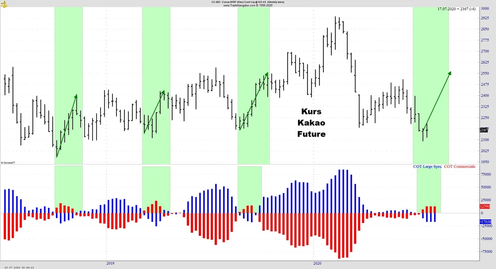 Wir mögen Kakao. Nicht nur weil er gut schmeckt, sondern weil er zu den „Soft Commodities“ gehört. Diese zählen zu den volatilsten Produkten in den Rohstoff-Märkten. Bewegungen von 20 bis 30 Prozent in wenigen Wochen sind vollkommen „normal“. Gemessen wird die Nachfrage an den sogenannten Grindings, so wird die Vermahlung/Verarbeitung von Kakao bezeichnet. Letzte Woche sind die aktuellen Daten für Europa, Nordamerika und Asien veröffentlicht worden. Die Zahlen waren nicht gut, aber auch nicht so schlecht wie erwartet. Wir gehen davon aus, dass diese Entwicklungen im aktuellen Kakaopreis bereits von den Investoren berücksichtigt wurden. Besonders Europa und Asien sind hervorgestochen: Sowohl im ersten wie auch im zweiten Quartal wurden die negativen Erwartungen aufgrund der weltweiten Pandemie nicht erfüllt. Die Situation auf dem Gesamtmarkt könnte somit fundamental einen interessanten Einstieg bieten. Das technische Bild sieht ebenfalls bereits nach einer ersten Bodenbildung aus.
