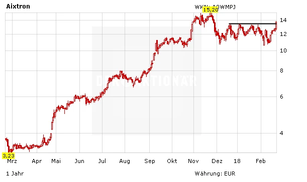 DER AKTIONÄR hat bereits mehrfach erklärt: Aixtron befindet sich auf Turnaround-Kurs. Im laufenden Jahr will die Gesellschaft die Restrukturierungsmaßnahmen fortsetzen und aktiv nach Partnerschaften suchen, um am Ende auch unterm Strich wieder in die Gewinnzone zurückkehren. Den anstehenden Turnaround hat die Aktie im abgelaufenen Jahr mit einem satten Kursplus von in der Spitze mehr als 370 Prozent honoriert.