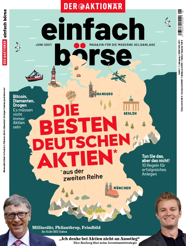 In der aktuellen Ausgabe erwartet Sie unter anderem ein Porträt von Microsoft-Gründer Bill Gates. Lesen Sie außerdem: „Stark, stärker, Mittelstand“ – einfach börse nimmt Sie mit auf die „Tour de Deutschland“ und zeigt Ihnen, wo die besten neun börsennotierten Unternehmen aus der zweiten Reihe zu finden sind.