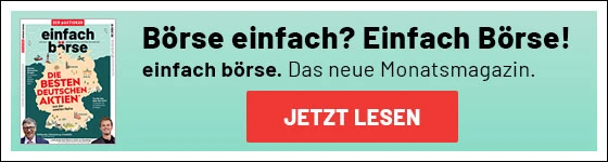 Mit einfach börse erhalten sowohl Einsteiger als auch Profis die Möglichkeit, ihr Börsenwissen maßgeblich zu erweitern. Das Monatsmagazin bietet außerdem relevante Infos zu aktuellen Entwicklungen, Trends und Top-Werten. Dabei profitieren Sie auch von exklusiven Interviews und Einschätzungen namhafter Experten, Wissenschaftler und CEOs und bleiben so immer auf dem neuesten Stand.