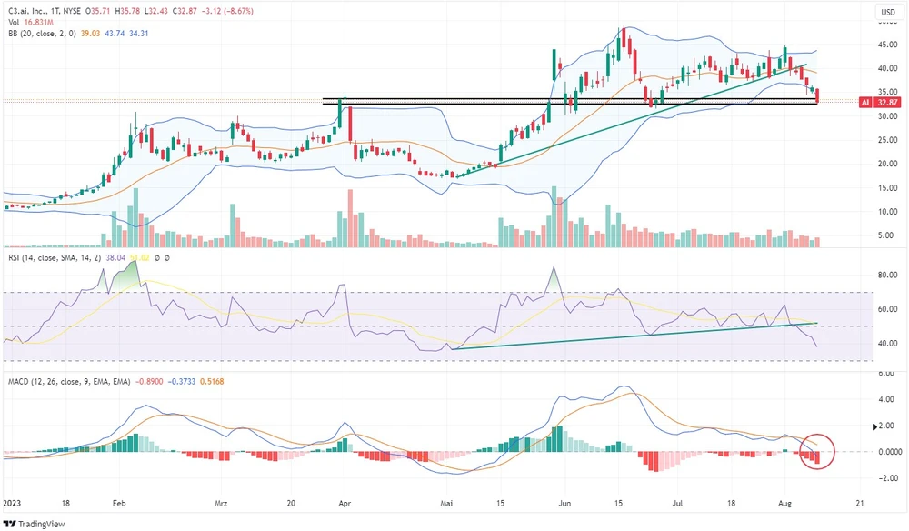 In hochvolatilen Aktien liegen Freud und Leid dicht beieinander - so dicht, dass zwischen neuen Hochs und einem Kaufsignal und einem Trendbruch mit ersten nachhaltigen Verkaufssignalen nur wenige Tage liegen können. So geschehen bei KI-Aktie C3.ai.