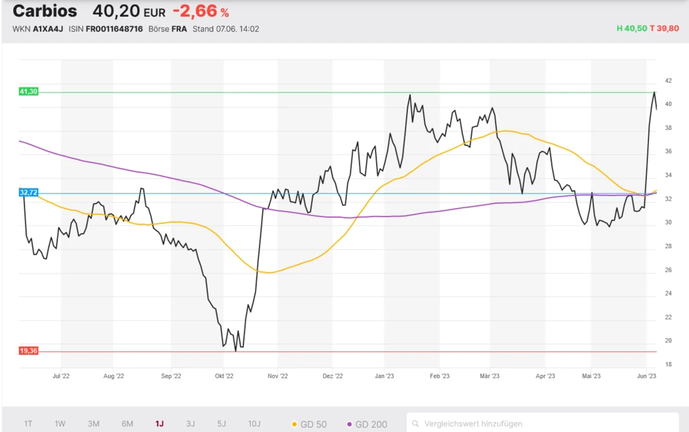 Von dieser Technologie sollten insbesondere Kunstoff-Recycling-Unternehmen wie der AKTIONÄR Hot-Stock Carbios profitieren. Bei Carbios handelt es sich noch um ein sehr junges französisches Unternehmen, welches enzymatische Technologien für das Recycling von Kunstoffen einsetzt. Seit Anfang Mai hat die Aktie rund 30 Prozent zugelegt. Ein Grund hierfür dürfte die Bekanntgabe der Partnerschaft mit Indorama Ventures zum geplanten Bau einer ersten PET-Biorecycling-Anlage in Frankreich sein.