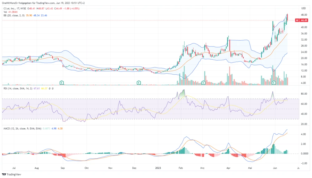 Mit einem Plus von über 300 Prozent seit Jahresbeginn ist die KI-Aktie C3.ai aktuell eines der heißesten Papiere an der Wall Street. Neben dem Hype um Künstliche Intelligenz wird der Kurs vor allem durch eine enorm hohe Leerverkaufsquote getrieben, in der Aktie läuft bereits seit Wochen ein Short Squeeze. Vor dem Wochenende aber kam es zu ersten Gewinnmitnahmen - läuten diese nun ein Ende des Kursfeuerwerks ein?