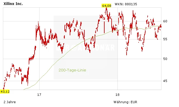 Xilinx kontrolliert etwa 60 Prozent des FPGA-Marktes und verfügt mit Amazon, Baidu oder Alibaba über namhafte Partner. Das KGV von 23 des Chip-Herstellers wirkt angesichts des schwachen Umsatz- und Gewinnwachstums der letzten Jahre hoch. Doch an der Börse zählt die Zukunft und die Analysten erwarten dank der KI-Entwicklungen in den kommenden Jahren steigende Wachstumsraten. DER AKTIONÄR meint: Gewinne laufen lassen.