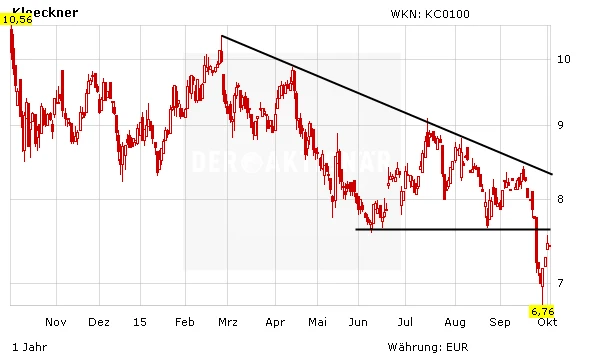 Die Wende ist noch lange nicht geschafft. Trotz der guten Entwicklung der letzten Tage bleibt die Lage bei Klöckner kritisch. Die Übernahme macht Sinn, der Preisdruck in der Stahlbranche belastet aber weiterhin. Der langfristige Abwärtstrend ist zudem nach wie vor intakt. Insgesamt bleibt das Risiko zu hoch. Anleger sollten nicht in das fallende Messer greifen.
