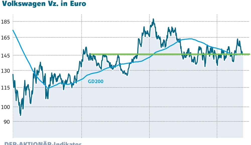 Fazit: Von Imageverlust durch den Diesel-Skandal ist bei VW keine Spur mehr. Die Aktie kämpft im Moment mit der wichtigen 200-Tage-Linie. Sollte dies als Unterstützung bei 146,20 Euro nachhaltig fallen, könnte die VW-Aktie aber bis auf 138,00 Euro durchrutschen. Aktuell sind dennoch bereits erste vorsichtige Käufe vertretbar.