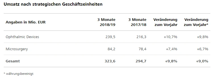 Gute Geschäfte in seinen Kernmärkten Deutschland, Frankreich und Südeuropa haben das Wachstum des Medizintechnik-Unternehmens Carl Zeiss Meditec zum Start ins neue Geschäftsjahr 2018/19 angetrieben. Dabei konnte in beiden Geschäftsbereichen zulegen. "Wir sind erfolgreich in das neue Geschäftsjahr gestartet und konnten unsere Marktanteile in beiden strategischen Geschäftseinheiten weiter ausbauen", sagt Vorstand Dr. Ludwin Monz.