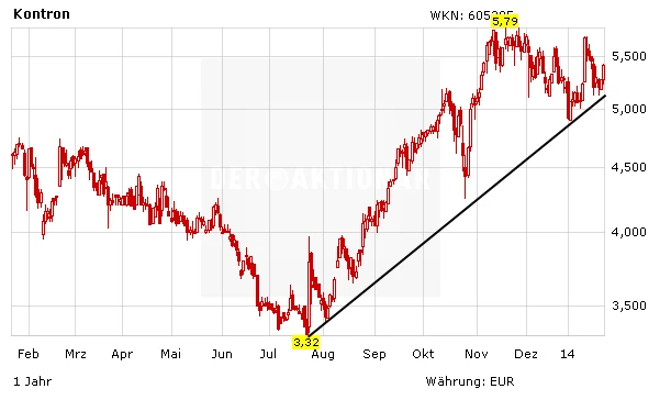 Der erste Anlauf das 52-Wochen-Hoch zu überwinden scheiterte zuletzt. Für neuen Schwung könnten die Ernennungen von zwei neuen Managern sorgen. Ab 1. Februar soll Ulf Harring als COO (Chief Operating Officer) die neue Unternehmenssparte Group Operations leiten. Bereits seit dem 07. Januar 2014 ist Dr. Stephan Gutthal als neuer Leiter des Group Sourcing bei der Kontron AG tätig. Sowohl Harring als auch Gutthal bringen mehrjährige Managementerfahrung mit. „Wir freuen uns, mit Ulf und Stephan zwei hochqualifizierte Experten gewonnen zu haben. Die Bereiche Einkauf, Supply Chain und Produktion spielen eine zentrale Rolle bei der Verwirklichung der Ziele, die wir uns im Rahmen unseres Strategieprogramms 'New Kontron' gesetzt haben. Die beiden neuen Kollegen werden uns dabei helfen, diese Bereiche optimal für die Zukunft aufzustellen“, so der Vorstandsvorsitzende Rolf Schwirz.