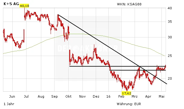 Hingegen stuft die Baader Bank die Aktie von K+S nur mit "Hold" ein (Kursziel: 22 Euro). Analyst Markus Mayer erklärte, die Bilanz des ersten Quartals sei durchwachsen. Der Cashflow des Düngemittel- und Salzherstellers sei stark gewesen. Das Kali-Umfeld hält Mayer aber für unsicher.