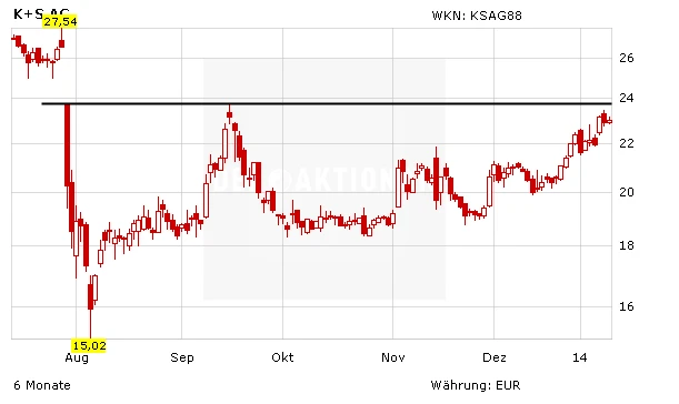 Der Düngemittel- und Salzhersteller K+S sucht neue Abbaugebiete. Zwar erschließt der DAX-Konzern derzeit mit dem Projekt "Legacy" eine neue Mine in Kanada. Die Kasseler wollen sich aber für das absehbare Ende der zunehmend ausgebeuteten deutschen Bergwerke wappnen. "Nach Legacy werden weitere Minen-Aktivitäten folgen müssen", sagte Vorstandschef Norbert Steiner der "Welt am Sonntag".