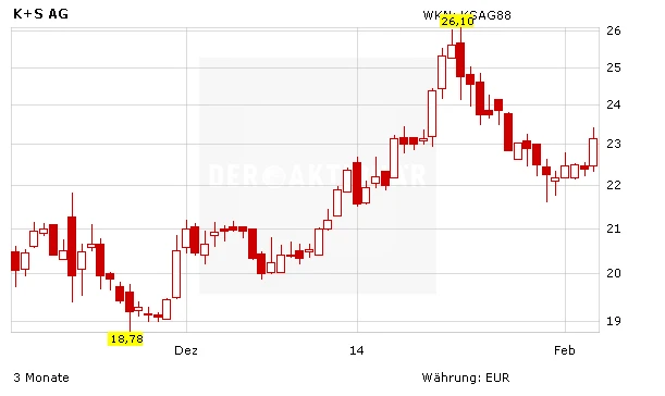 Der Chart hat immer recht. DER AKTIONÄR hat Anfang der Woche erklärt, dass bei der K+S-Aktie aus charttechnischer Sicht weiterhin die Chance auf einen Zwischenspurt besteht. Heute zieht die DAX-Aktie kräftig an. Die nötigen Impulse liefert eine Preiserhöhung am Kalidüngermarkt.