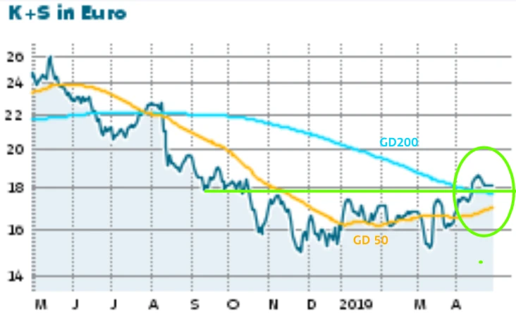 Der K+S-Kurs fiel von 38,80 Euro im Jahr 2015 auf nur noch 15,02 Euro Ende des vergangenen Jahres. Doch seitdem arbeitet die Aktie an einer Bodenbildung. Mit dem Sprung über den wichtigen Widerstand bei 17,75 Euro hat die Aktie ein starkes Kaufsignal generiert.