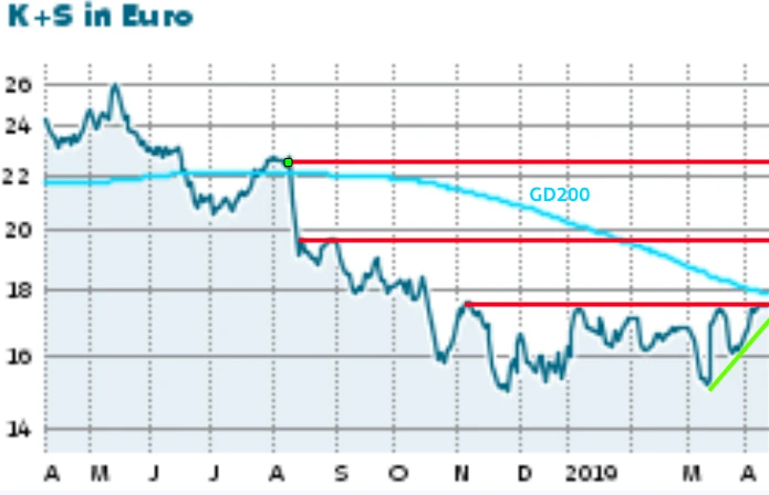 Operativ stimmt das Bild bei K+S also. Die Bewertung erscheint – auch im Branchenvergleich – mit einem 2020er-KGV von 9 und einem KBV von 0,7 deutlich zu niedrig. Was fehlt, ist die passende Aufwärtsbewegung. Die würde starten, sobald die Aktie den massiven horizontalen Widerstand bei 17,75 Euro nachhaltig überwindet. Zuletzt scheiterte der Kurs gleich mehrfach an dieser Hürde.