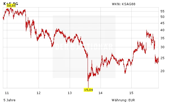 "Wir haben die Grundlagen für eine erfolgreiche Zukunft von K+S gelegt", betonte Steiner. In Kanada steckt der Konzern derzeit viel Geld in eine neue Kali-Mine. Zudem setzt der Manager auf eine anhaltende Kostendisziplin sowie der erfolgreichen Umsetzung der Wachstumsstrategie für das Salzgeschäft. Am Vortag hatte der Konzern seinen Quartalsbericht vorgelegt und dabei die Prognosen für das laufende Jahr etwas gekürzt.