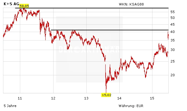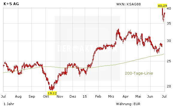 DER AKTIONÄR hält einen höheren Preis als das kolportierte Übernahmeangebot von 40,00 Euro für möglich, denn operativ ist K+S voll auf Kurs. Möglicherweise treten auch noch andere Interessenten auf den Plan, was den Preis weiter in die Höhe treiben könnte. Investierte Anleger bleiben bei der K+S-Aktie dabei.