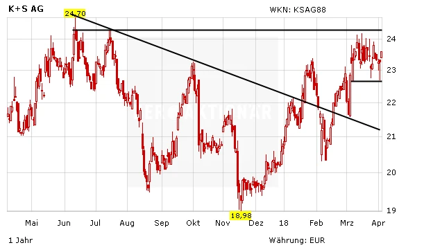 Die Aussichten für K+S hellen sich weiter auf. Allerdings bleibt der MDAX-Titel wegen der vielen Risiken weiterhin nur für mutige Anleger geeignet. Der Stopp sollte bei 18,50 Euro belassen werden.