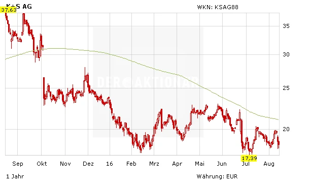 Die Talfahrt der Aktie des Düngemittel- und Salzproduzenten K+S setzt sich fort. Nachdem die Anteilscheine des MDAX-Konzerns bereits gestern unter negativen Analystenkommentaren gelitten haben (mehr hierzu unter: K+S weiter im Abwärtstrend), sorgt nun die UBS mit ihrer neuesten Studie für Abgabedruck.