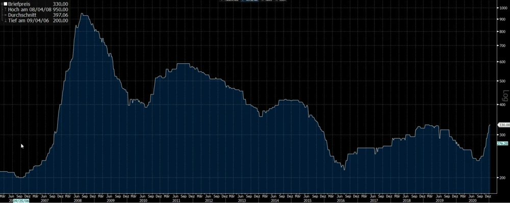 Nach einem beeindruckenden Endspurt 2020 läuft bisher auch das Börsenjahr 2021 sehr gut für K+S. Neben der allgemein freundlichen Stimmung an den Märkten hilft dem MDAX-Titel derzeit vor allem die starke Entwicklung der Kalipreise. Diese haben sich etwa in den USA innerhalb kurzer Zeit so stark verteuert wie seit 2008 nicht mehr (siehe Chart).