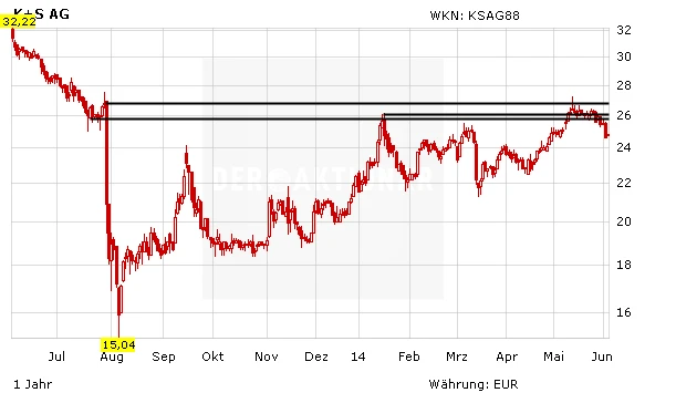 Die Nachricht dürfte kaum Einfluss auf den Kurs haben und die Kritik dürfte nur ein wenig leiser werden, nicht aber verstummen. Die Aktie von K+S ist zunächst an einem Widerstand gescheitert und konsolidiert seitdem. Dennoch glaubt DER AKTIONÄR, dass das Papier das Potenzial hat, bis in den Bereich von 30,00 Euro vorzustoßen.
