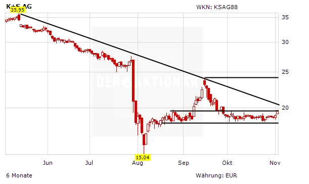 Die Kurszziel-Anhebungen der Analysten kommen etwas mehr als eine Woche vor den Quartalszahlen (am 14. November) überraschend: Der Markt rechnet bei K+S mit schwachen Zahlen. Doch offensichtlich setzen Anleger darauf, dass das schlechteste bereits eingepreist ist. Aus charttechnischer Sicht scheint eine Rallye bis 23,70 Euro möglich.