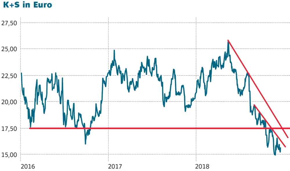Der MDAX-Konzern erwartet nun aufgrund der Trockenheit nur einen negativen Ergebniseffekt von zehn Millionen Euro auf das EBITDA des vierten Quartals. Zuvor war der Vorstand n och von 15 Millionen Euro ausgegangen. Darüber hinaus gab es einen Zusatz, der den Aktionären Mut für 2019 machen dürfte: „K+S geht weiterhin davon aus, dass auch bei Trockenheit im ersten Quartal 2019 Stillstände in der Kaliproduktion am Werk Werra unwahrscheinlich sind.“