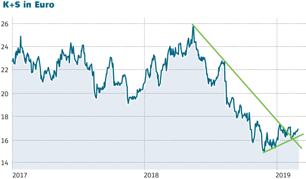 Die Chancen, dass 2019 wieder ein gutes Jahr für K+S wird, stehen gut (siehe dazu das Exklusiv-Interview mit dem K+S-CEO Burkhardt Lohr). Kaum ein im HDAX notiertes Unternehmen dürfte den Gewinn im laufenden Jahr so derart kräftig steigern wie K+S. Zudem ist die Bewertung im Branchenvergleich sehr günstig und dem Chart ist nach jahrelanger Talfahrt endlich die Bodenbildung geglückt. DER AKTIONÄR setzt daher im Realdepot auf das Papier.