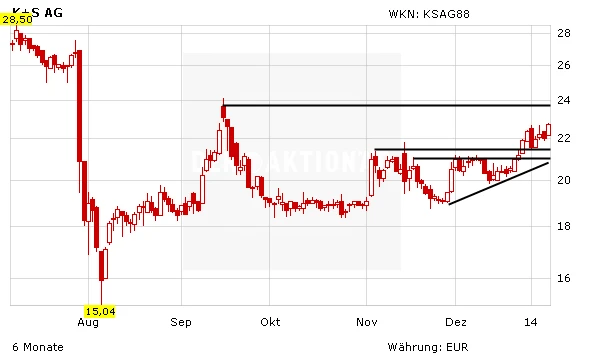 Kommt es 2014 zum großen Rebound bei der Aktie des Kali- und Salzproduzenten K+S? Fast scheint es so. Aus charttechnischer Sicht gibt es durchaus ermutigende Signale. Und auch die Analysten werden wieder mutiger. Die Tradingsposition ist auf einem guten Weg.