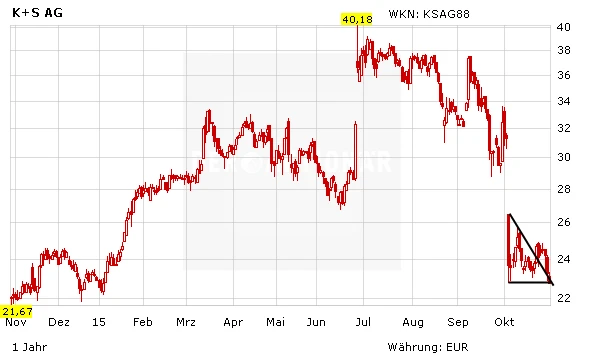 Denn Analyst Markus Mayer hat die Einstufung für die Papiere von K+S nach der Gewinnwarnung des Konkurrenten Potash erneut mit "Sell" bestätigt. Das Kursziel wurde bei 21 Euro belassen, was weitere knapp neun Prozent unter dem aktuellen Kursniveau liegt. Der Experte erklärte, die gesenkten Gewinnziele von Potash und der Abschwung der Preise der Kali- und Magnesiumprodukte dürften den Düngemittelhersteller aus Kassel belasten. Er bleibe für den gesamten Kalimarkt im Allgemeinen zurückhaltend.
