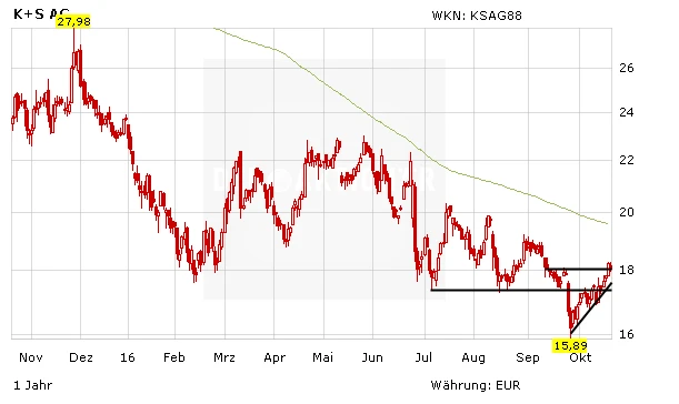 Es lief zuletzt wieder rund für die zuvor monatelang gebeutelte Aktie des Düngemittel- und Salzproduzenten K+S. Der MDAX-Titel konnte sich wieder deutlich von dem Ende September markierten Tief bei 15,89 Euro entfernen. Dadurch hatte sich das Chartbild auch wieder klar aufgehellt. Doch am Freitag gab es einen weiteren Tiefschlag.