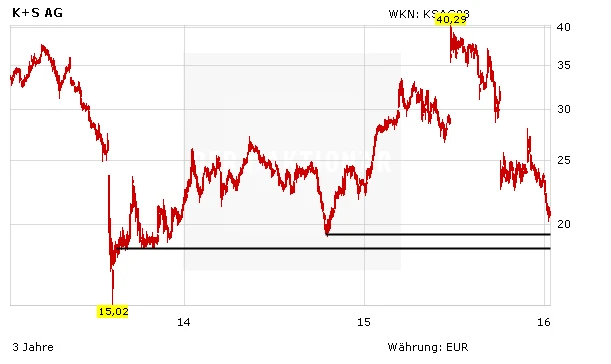 Die neuesten Entwicklungen zeigen wie sehr Vorstandschef Norbert Steiner nach der gescheiterten Übernahme durch Potash unter Druck steht. Denn seitdem hat sich die Aktie nahezu halbiert und steuert ein neues Jahrestief an. Für Halt sorgen die Marken von 19,35 Euro und 18,31 Euro.